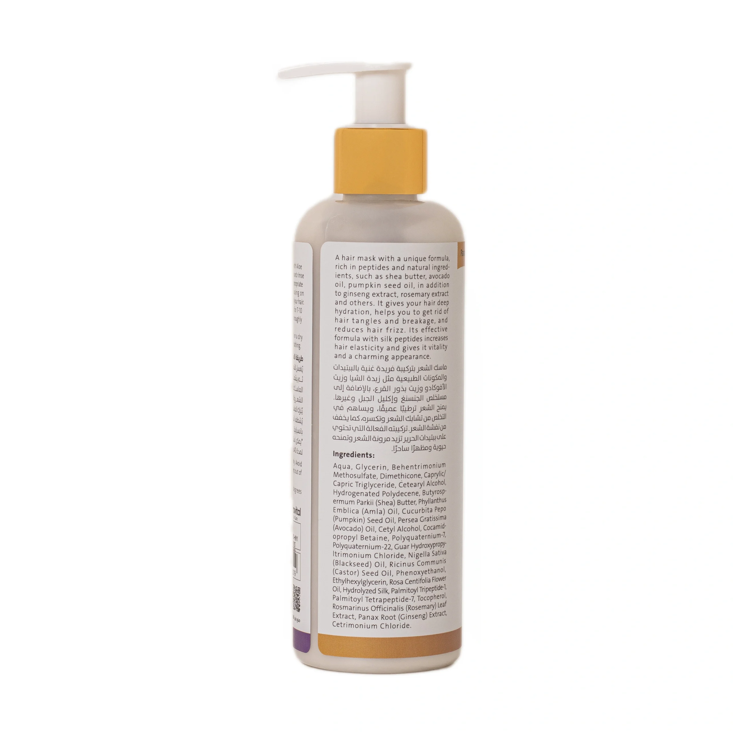 مزيج غني بزبدة الشيا وبروتين الحرير مع زيوت أملا والحبة السوداء وإكليل الجبل، يمنح شعركِ ترطيباً فائقًا ويساعد على ترميم أليافه بفضل الببتيدات. - فيلر سدل للشعر
